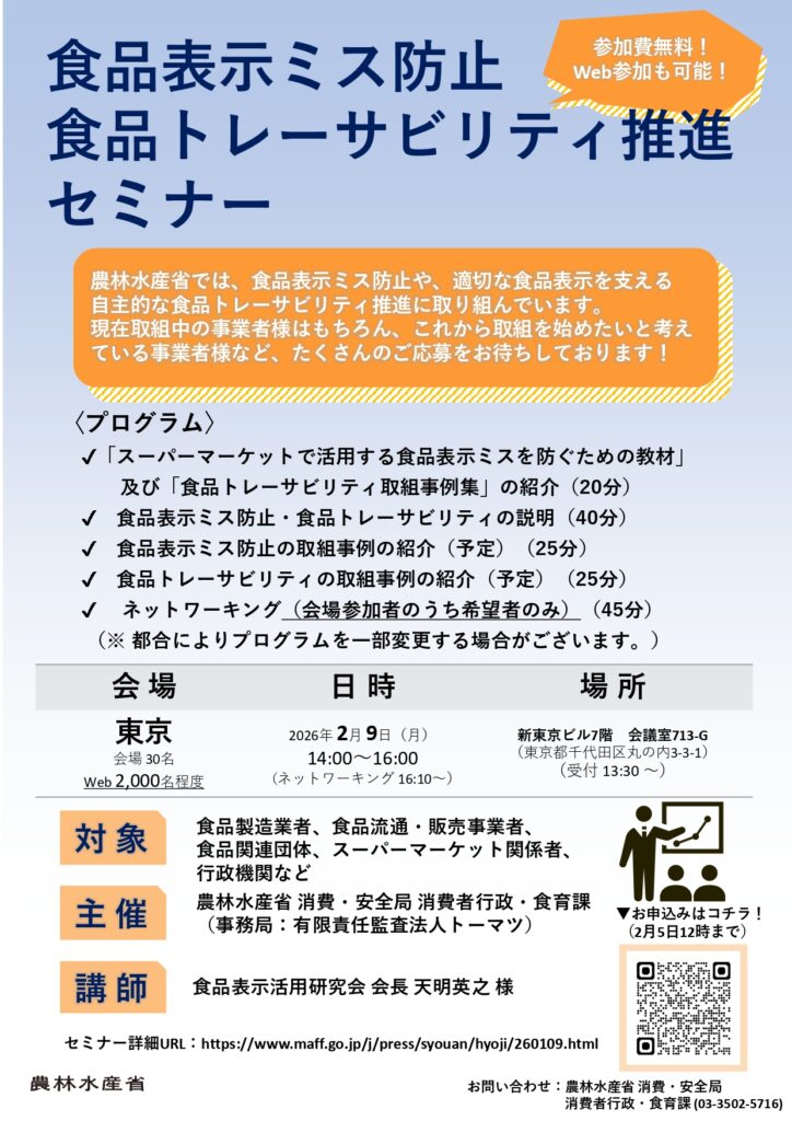 食品表示ミス防止食品トレーサビリティ推進セミナーのご案内について